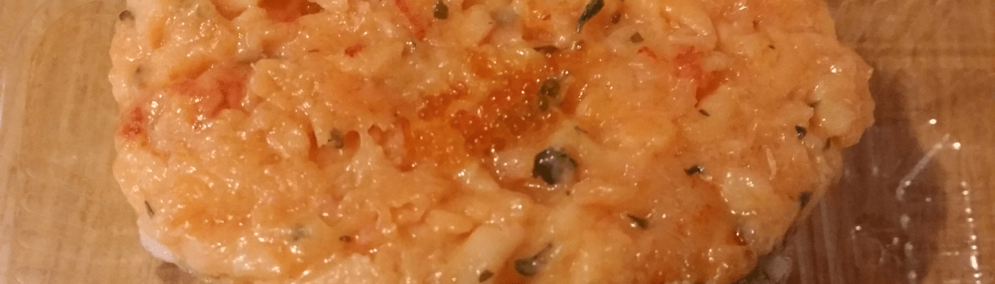Another delicious sushi is the inari. I love the fried tofu, which is so delicious that I can eat it by itself. Unlike the sushi with seaweed, an inari is commonly described as a fried tofu “pocket” stuffed with sushi rice. I had the crab inari, which had some toppings that included shredded crab sticks and fish roe. A bit of wasabi gives a kick to the inari.