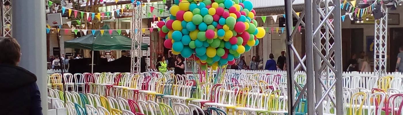 Although I missed the fashion show (which was held at night, under the stars and pretty string lights), I had a glimpse of the setting at daytime. With colourful rows of chairs and the faux grass runway, this fashion show had a pretty setting. The buntings and balloons added a fun garden tea party vibe, which was a lovely touch to the lively mall. The runway went through the Arcade and right into the Mall, and I thought it was pretty cool.