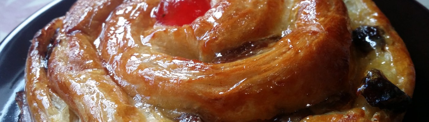 I love croissants. It looks extremely buttery and the glaze is so appealing with the raisins and the cherry. All the pastries look yummy.