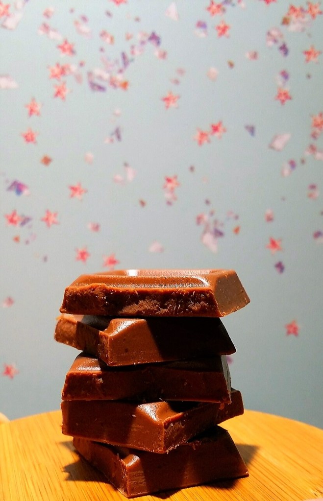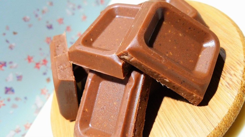 To my surprise, the hazelnuts are well-concealed. Nothing pointed to nuts just from a quick glimpse, which was my first encounter with the chocolate. That’s because they’ve been crushed finely! You’ve got to look at the chocolate carefully to notice the specks – like millions of stars dotting a night sky. They appeared when my eyes scanned the bar for signs of nuts!