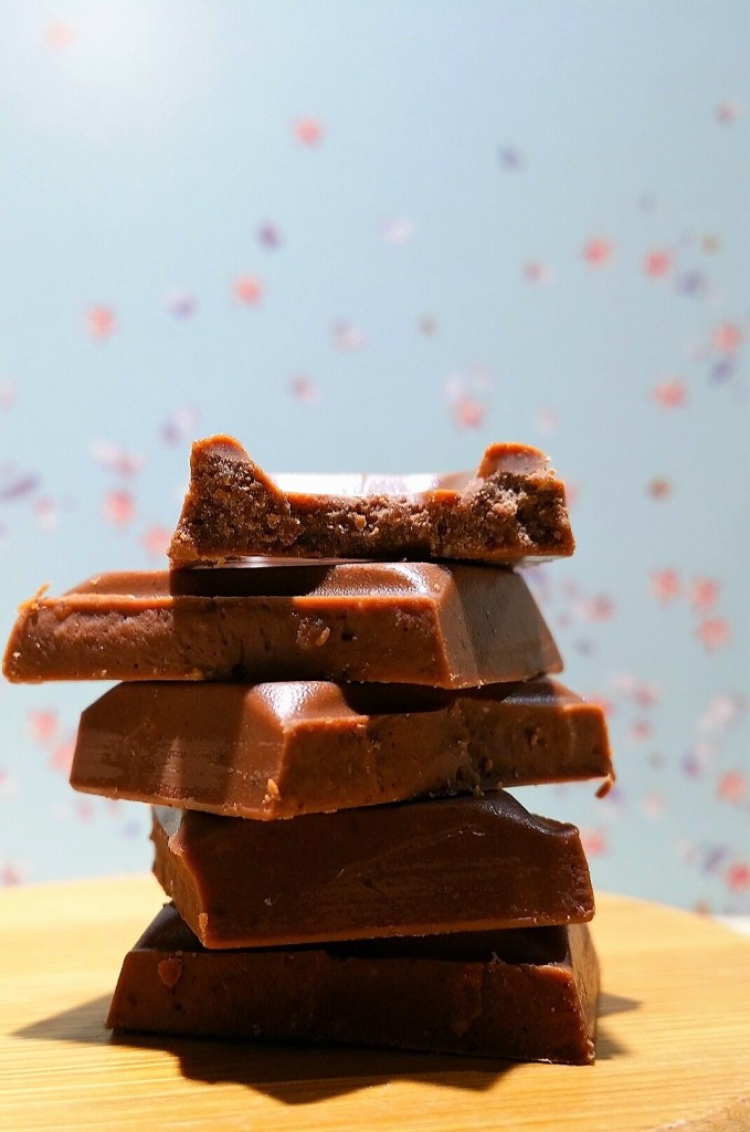 The fudgy-looking bars are equally yummy when they’re refrigerated. With summery weather upon us, I wanted to preserve its shape before the sun got to it! Flavor-wise, milk chocolate stands out the most, hence making it the star of the show. Hazelnuts have a supporting role in the star-studded line-up, to my flavor palate at least. They’re both blended well, nevertheless, and each bite was enjoyable.