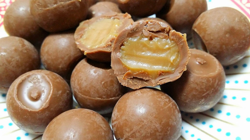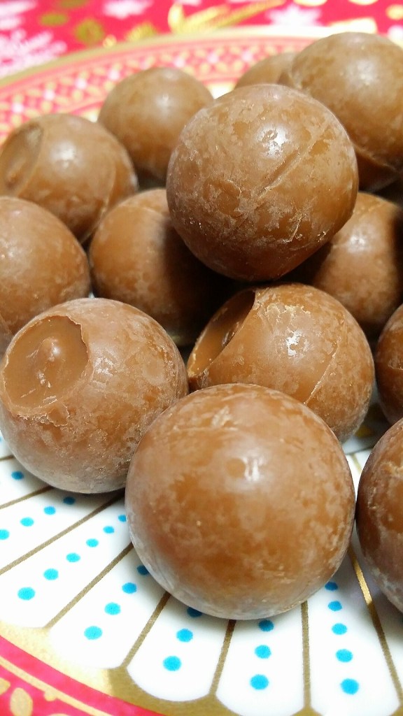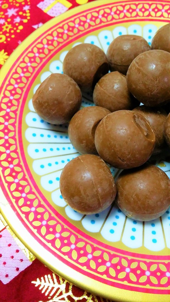As soon as I unsealed the packet (cool fact: it’s re-seal able!), a distinctive scent of Baileys greeted my nose. Medium-sized milk chocolate spheres – that are almost as round as Rudolph’s nose – peeked out, and I was eager to take a bite.