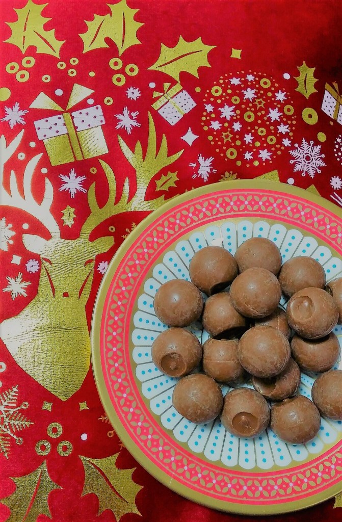 With a festive spring in my step, I headed back to Santa’s warehouse outside the North Pole (a.k.a. the shops) to pick up more Christmas bits. A trip to the shops resulted in yet another special chocolate discovery for the holidays. I was especially excited to grab this little bag of chocolates, because it arrived all the way from Ireland! And just like that, a pack of chocolates leaped out from the shelf and landed straight into my shopping basket. Seeing Irish chocolates isn’t a daily occurrence here on the island, so I couldn’t leave the supermarket before purchasing some to bring home. It isn’t any ordinary chocolate: it is milk chocolate truffles with a touch of Baileys Irish Cream!