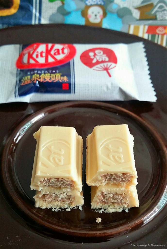 One of these unique Kit Kats, which I spotted on a trip to the shops, is the onsen manju Kit Kat. Inspired by red bean buns (manju) that are available in towns with hot springs (onsen), this Kit Kat is typically exclusively available at only 21 hot spring resort towns in the Land of the Rising Sun. There’s no other way to taste this Kit Kat, except by plotting a trip to an onsen… until now!