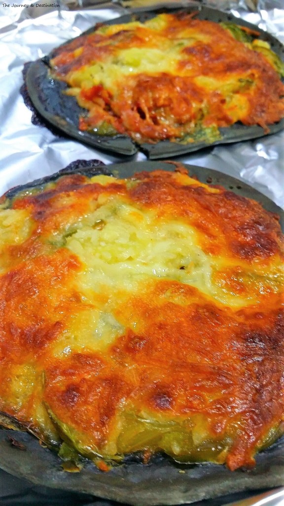Having been loaded heavily on the center of each base, the toppings covered more space on the pizzas’ bases while they were in the oven, thanks to melted cheese. Speaking of cheese, a medley of grated mozzarella and white cheddar cheese is placed above the other toppings, rather than beneath them! This results in a cheesy blanket that coats the other elements pretty comprehensively.
