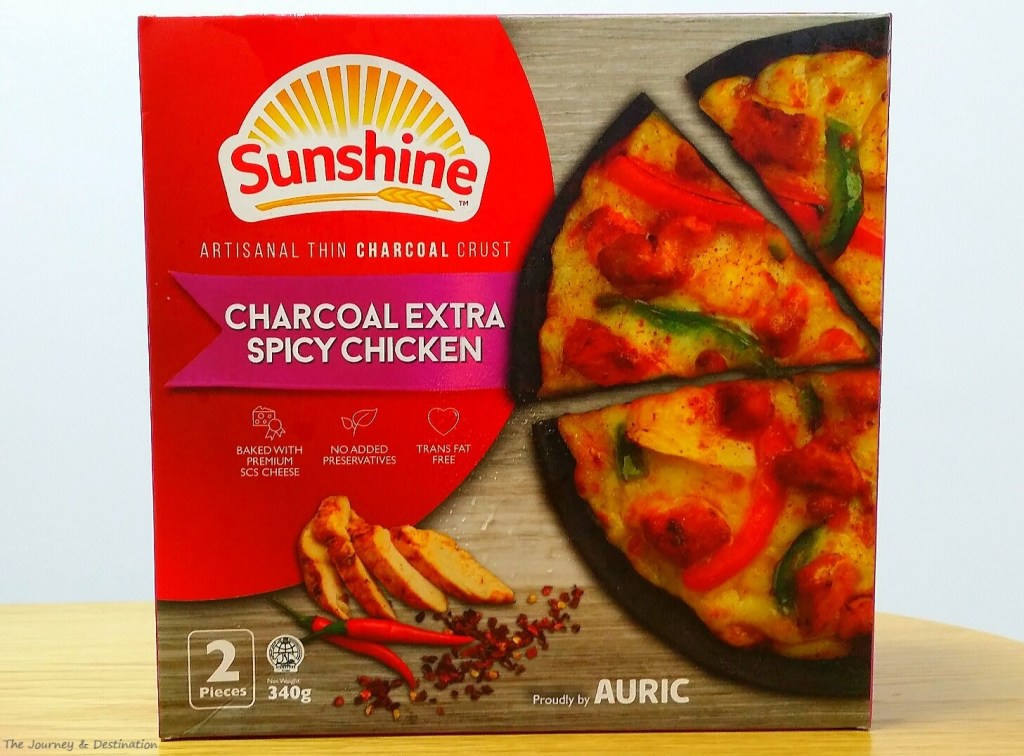 Made locally on the island, Sunshine’s frozen pizza range comprises of both classic and charcoal doughs. I chose the spicy chicken version, but there are cheese and BBQ chicken versions too. They are all available in both large and personal pan pizza sizes. As I couldn’t spot the large pizzas, I settled with the personal pan pizzas instead. I couldn’t wait any longer to be introduced to one of the newest kids on the pizza block!