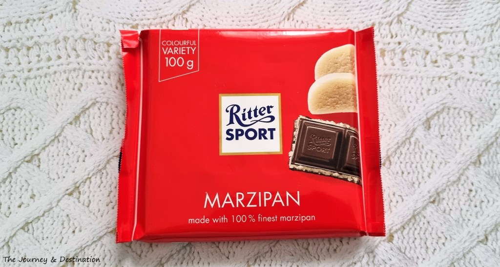 While Ritter Sport chocolates are available around the island, marzipan chocolate is a rare sight for choco-holics – especially when the sun is shining brilliantly outside. It isn’t a usual chocolate option at supermarkets here. Since it was a now-or-never moment, I couldn’t resist adding a block in my basket. Not only does this chocolate make for another fun food adventure, it is absolutely perfect for my mini ‘Christmas in July’ at home!