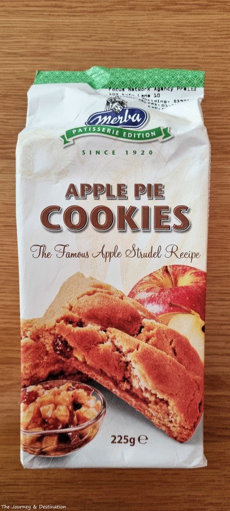 I did find a strudel… well, sort of. Sitting at the sweet snacks section in the supermarket was apple strudel in the form of cookies! Hailing from The Netherlands, these cookies (from a Dutch brand named Merba) are called ‘apple pie cookies’, which is said to follow an apple strudel recipe. My guess is that the filling is a nod to apple strudel, while the cookie is inspired by apple pie. Will the pie/strudel and cookie realms collide in this epic dessert crossover? I had to seek the answer!