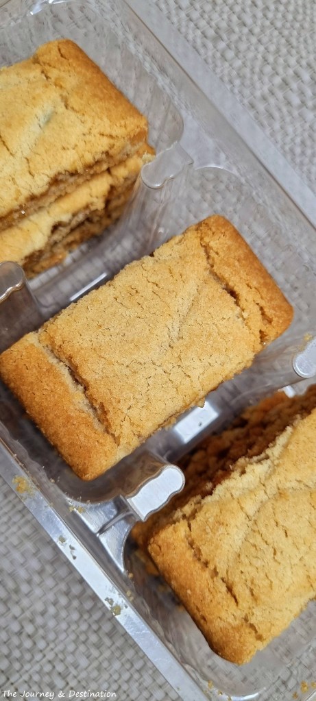 The filling is definitely the highlight of every strudel and pie. This cookie’s caramel-hued apple pie/strudel filling is no exception to that excitement. It is a strudel filling that has been re-imagined into a cookie filling, without losing strudel’s essence. Soft and sticky, the strudel part is chewy and a little gooey. It is almost like a jam, but thicker and denser. The filling is 25% of the cookie, and the filling-to-cookie ratio is pretty balanced in taste and texture.