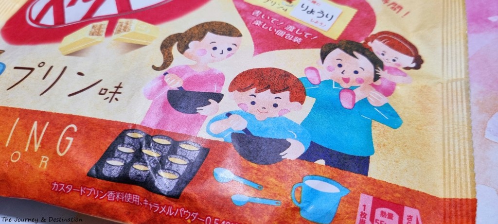 Like all special Kit Kats, the pudding Kit Kat package’s aesthetics is as unique as its flavor. From bits of sleuthing, I discovered that the inspiration behind this fun design is the joy of spending time with loved ones. This explains the illustration of a family who is bonding over the process of making their very own puddings!