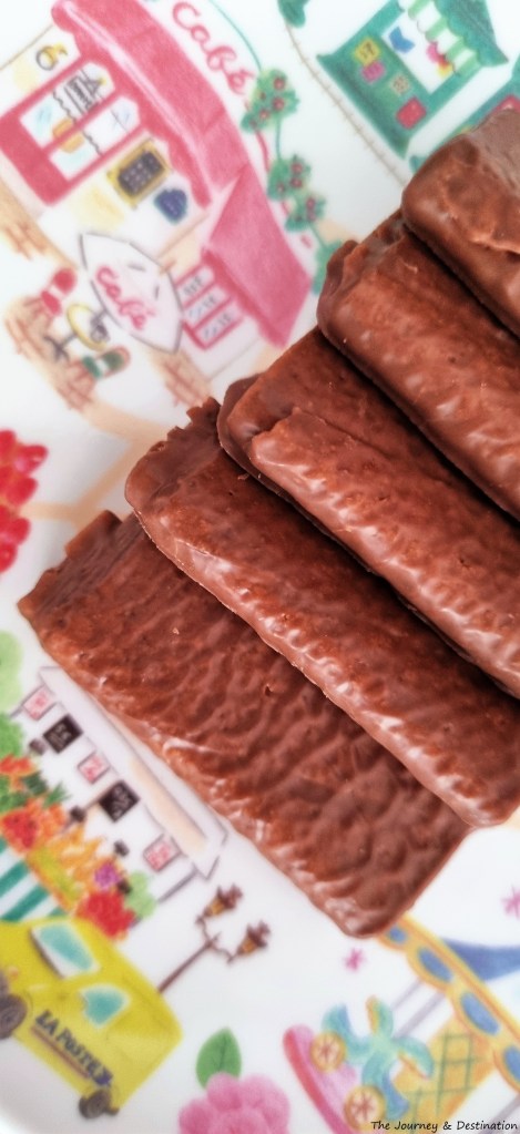 Apart from being biscuits that are fit for teatime, dentelles are also commonly crumbled and sprinkled on top of ice creams for a crunchy edge. The original version does not contain a chocolate coat, though. Being a self-professed chocoholic, I instantly gravitated towards the milk chocolate ones!