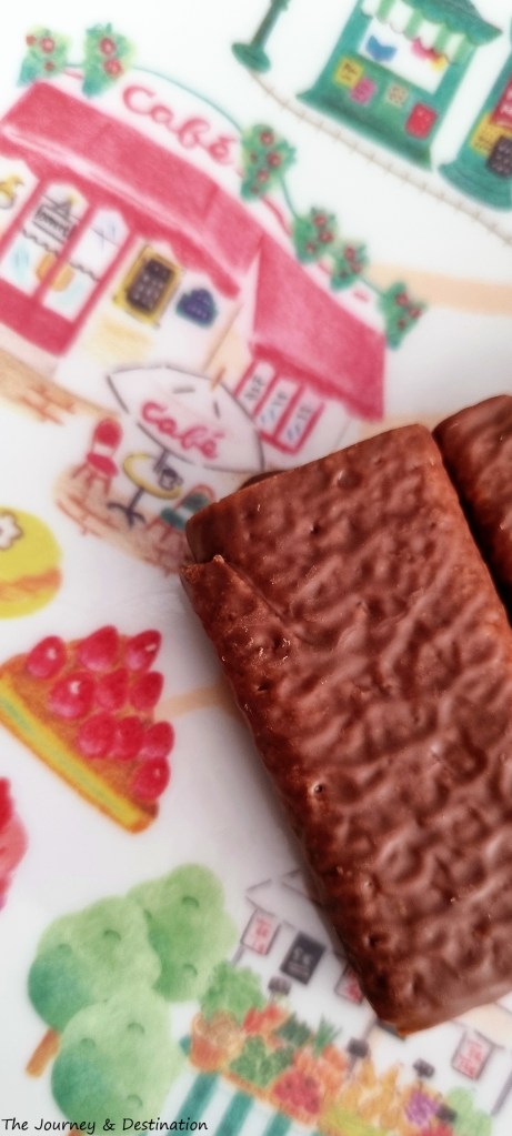 It’s time to taste! The chocolate-dentelle combo is fabulous as they blend together harmoniously, much like how chocolate unites with biscuits or cookies in regular chocolate-dipped bakes. The milk chocolate feels right at home to my chocolate-loving taste buds with its rich milky-cocoa flavor. The crêpe biscuit’s notes lean towards the biscuit realm rather than regular crêpes, and it also has a little crunch. It has the soul of wafers with a twist – this twist is the batter. The batter is relatively thin, but it brings a substantial bite through the folded layers. From flavor and batter viewpoints, the biscuit jogs my taste buds’ memories of waffle-y ‘love letter’ wafer rolls that make appearances here on the island every now and then.