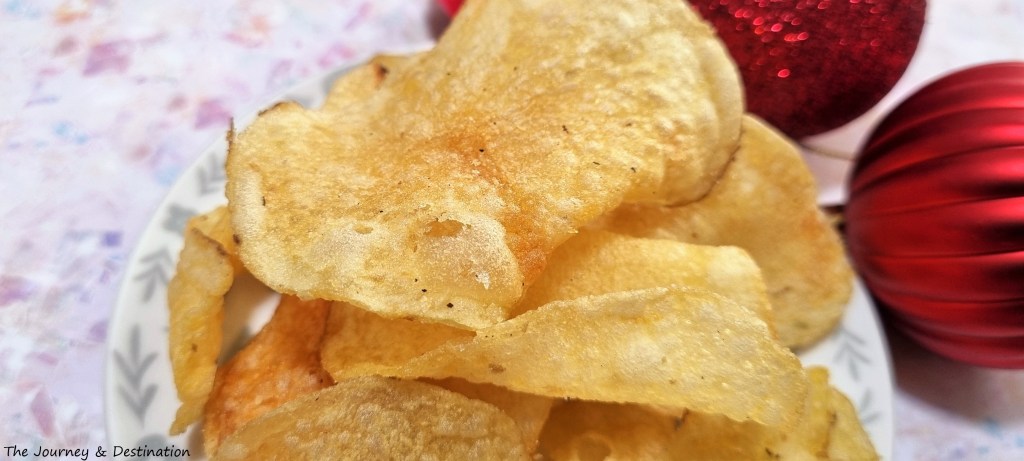 It took a few bites in the beginning for me to get used to the flavor. Once my taste buds were re-acquainted with truffles, the flavor was just right and balanced nicely with the potatoes. The potatoes are delicious and they are a great savory canvas to shine the spotlight on the truffles. The chips are perfectly crunchy too. They are a lovely touch to my Christmas movie-watching snack sessions.