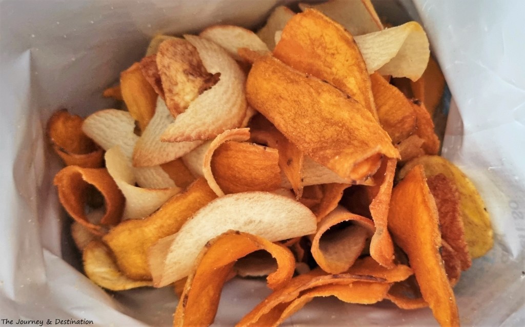 I was undeniably elated to open this bag of munchies. With the pops of radiant shades of orange and yellow, the ‘tropical chips’ mix certainly celebrates the tropical theme. Each chip features the aesthetic details of the actual produce in their pre-chip forms – the shapes, colors and definitions of the veggie and fruit slices make the chips very delectable.