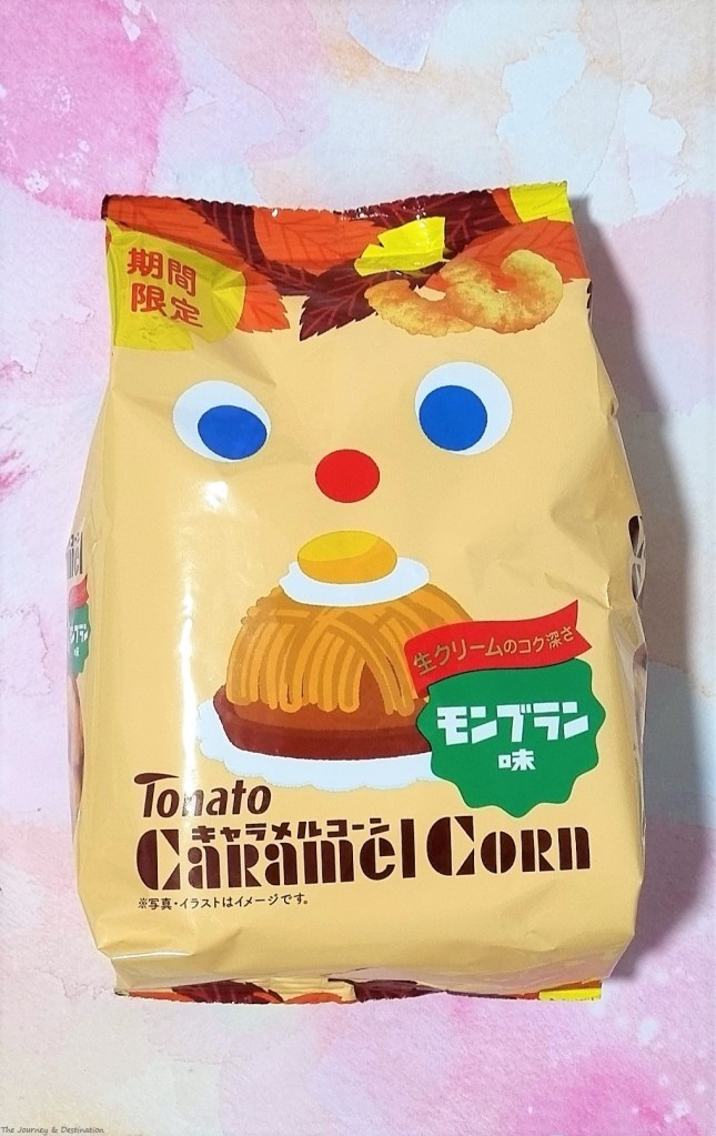 Caramel corn is a sweet corn-based snack in Japan by a brand named Tohato. Not to be confused with caramel popcorn, this caramel corn refers to a cashew-shaped corn puff snack with a sweet coat of caramel. Being incredibly moreish, it’s easy to finish an entire bag in one go. While the snack’s general name is ‘caramel corn’, it has ventured into other flavor options beyond the original caramel. Matcha (green tea) and chocolate caramel corn flavors are also available year-round. Seasonal flavors make appearances too, like this mont blanc version.